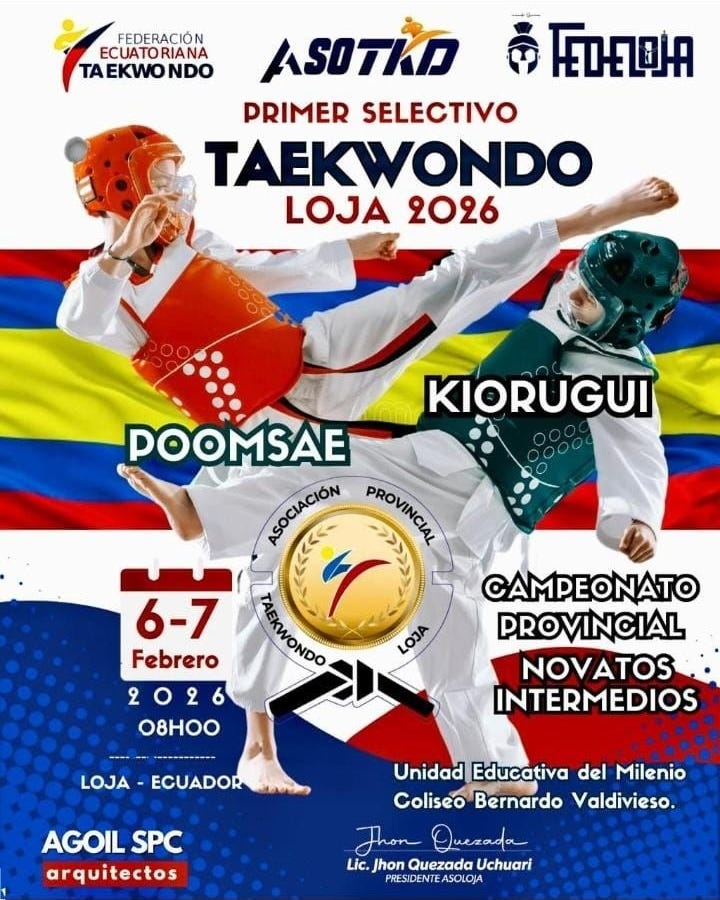 La ciudad de Loja se convirtió en el epicentro del taekwondo ecuatoriano durante el fin de semana del 6 y 7 de febrero, al albergar el Campeonato Provincial y Primer Selectivo Provincial de Taekwondo 2026, organizado por la Asociación Provincial de Taekwondo de Loja bajo la presidencia de Jhon Quezada Uchuari.