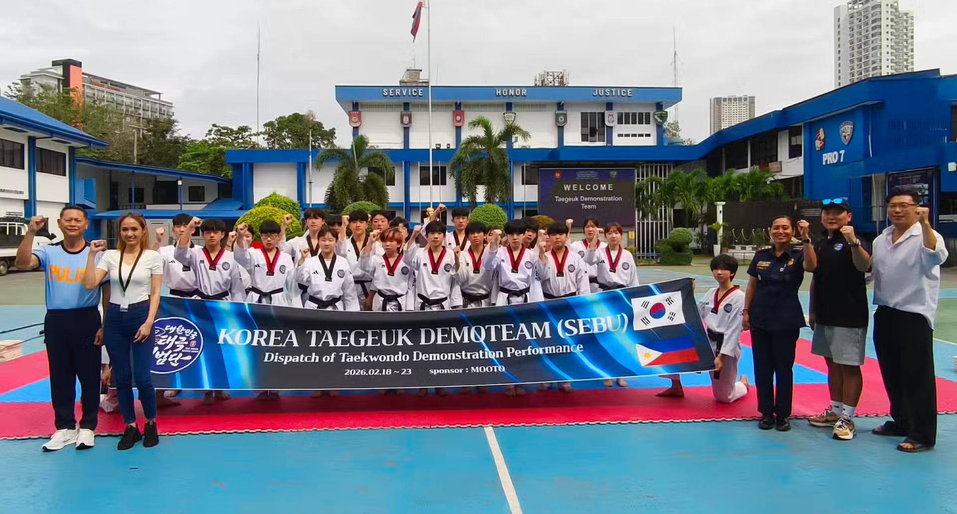 El grupo conformado por 28 miembros (considerado uno de los equipos de demostración más destacados y multi-titulados del mundo) realizó al menos una presentación principal en la sede de la Police Regional Office (PRO) 7 en Camp Sergio Osmeña. Allí, personal policial, oficiales y asistentes quedaron impresionados por las coreografías sincronizadas, saltos de alta altura y trucos de patadas que rompieron globos, tablas y otros objetos con una ejecución impecable.