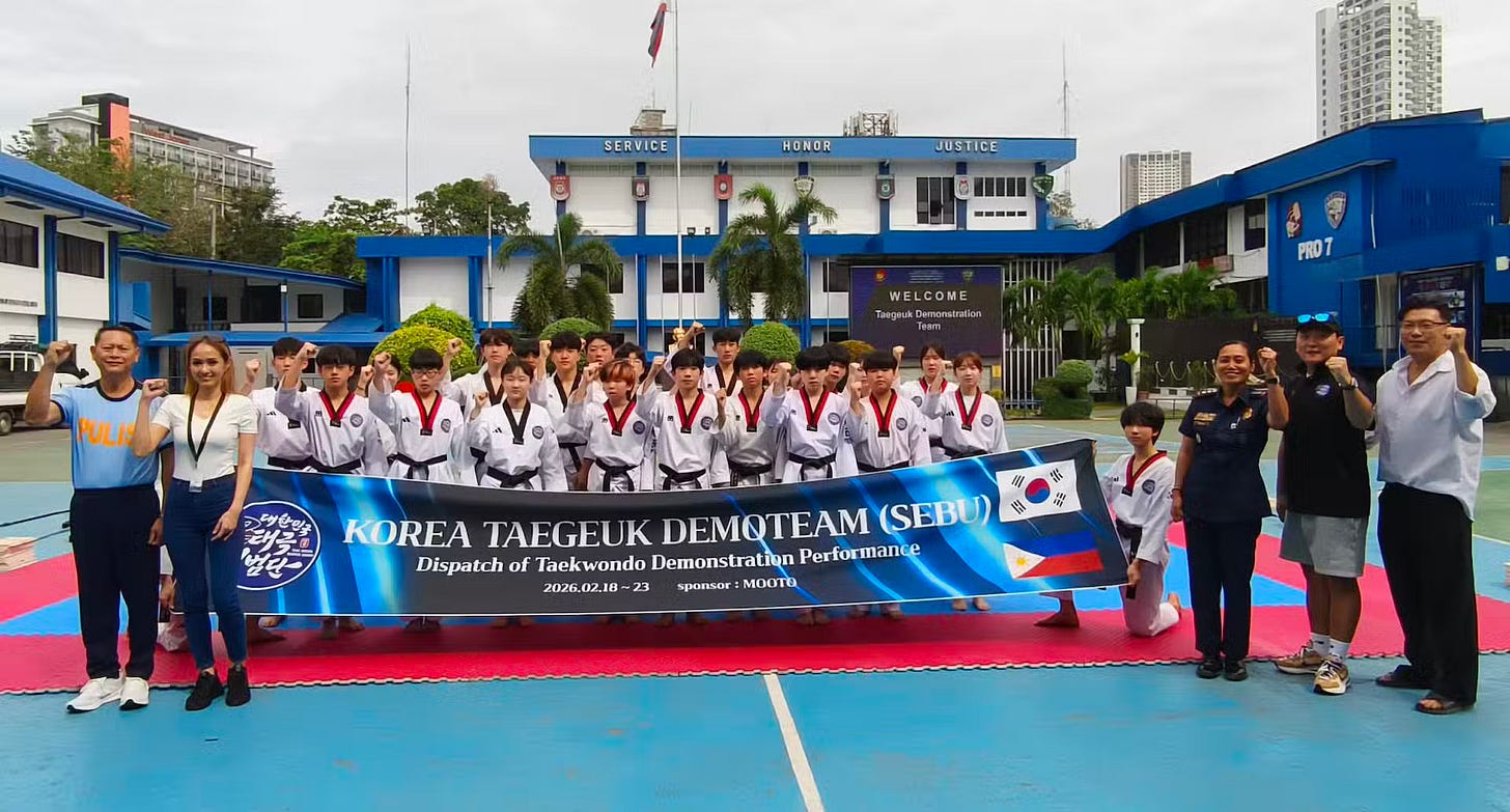 Un equipo élite de taekwondo de Corea del Sur, el Taegeuk Demonstration Team, cautivó al público cebuano con rutinas de precisión extrema, patadas giratorias imposibles y acrobacias que desafían la gravedad durante una serie de exhibiciones realizadas el viernes 20 de febrero de 2026. La visita, parte de un programa de intercambio entre Corea del Sur y Filipinas, buscó fortalecer lazos culturales y deportivos a través del arte marcial olímpico.